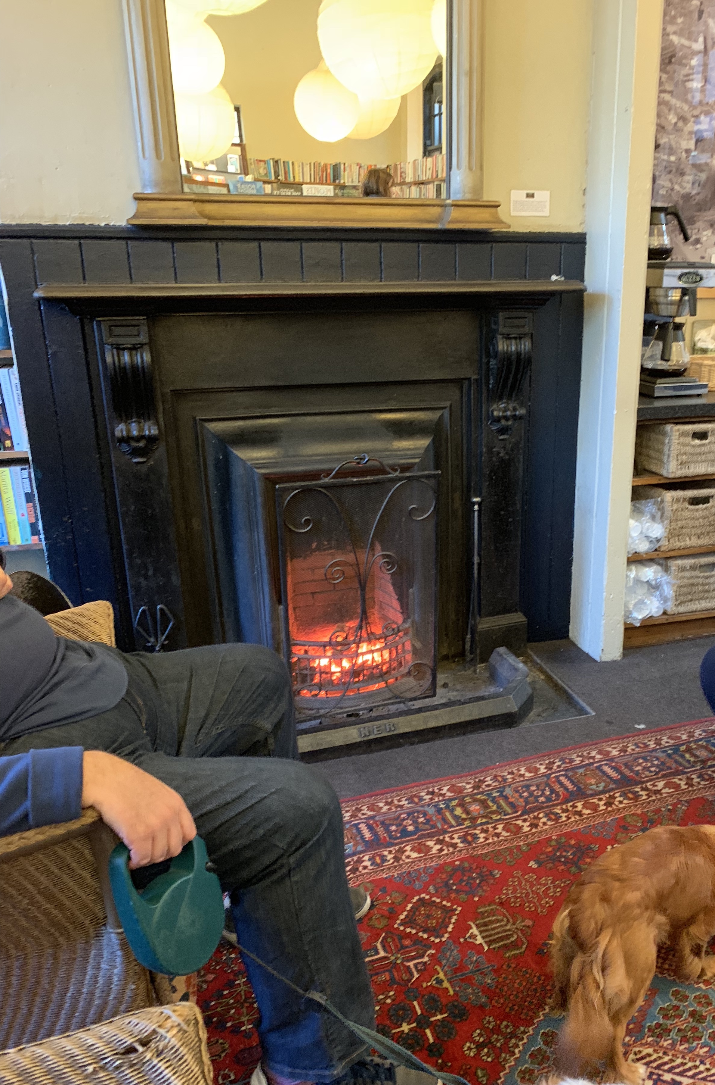 In the winter the favourite spot for my family to stop, flop and well, wait (!) is by the fire in the front of the shop. Cosy arm chairs, coffee, tea and even dog biscuits for the furry friends so welcome here. What is not to love?