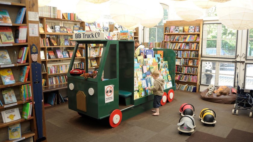 The children’s section of the bookshop is a treasure trove. So many of our family books have been purchased here over the years. It is a space that welcomes children of all ages with no hint of stuffiness. From the huge book lorry which houses a comprehensive selection of picture books, to the wheely bugs on the floor…