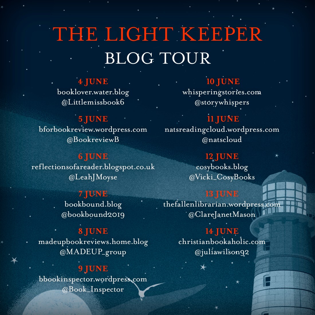 For other reviews and opinions on The Light Keeper check out the rest of the blog tour below…